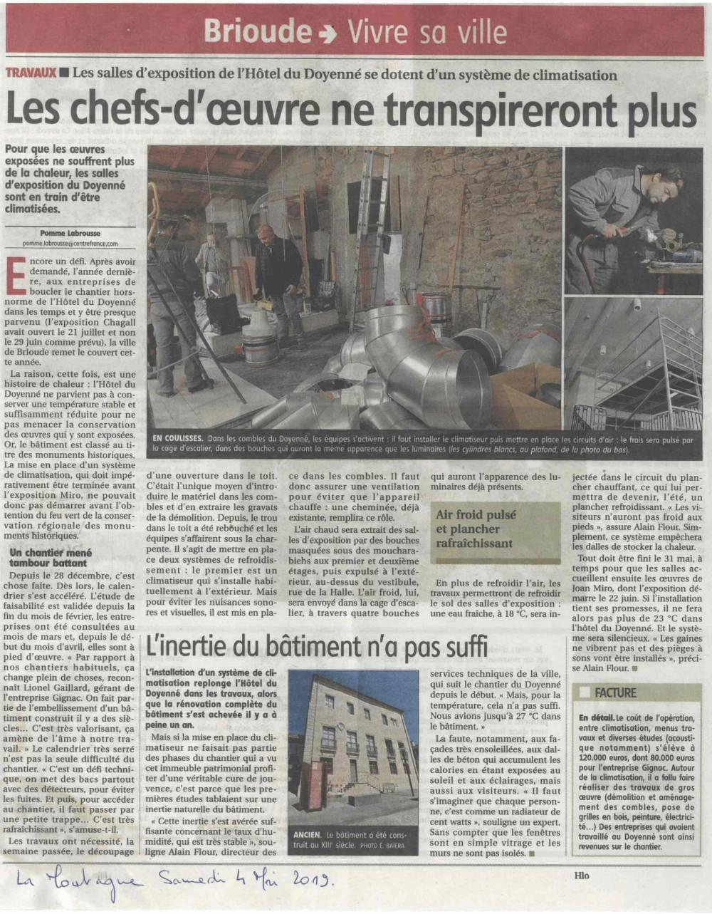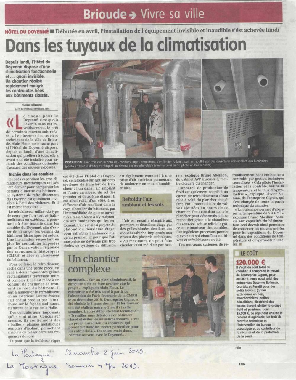 L’entreprise Gignac a fait bénéficier l’Hôtel du Doyenné à Brioude de son expertise et son savoir-faire. Immeuble patrimonial, l’équipe de Gignac a démontré ses compétences en climatisation industrielle lors d’une mission délicate.
